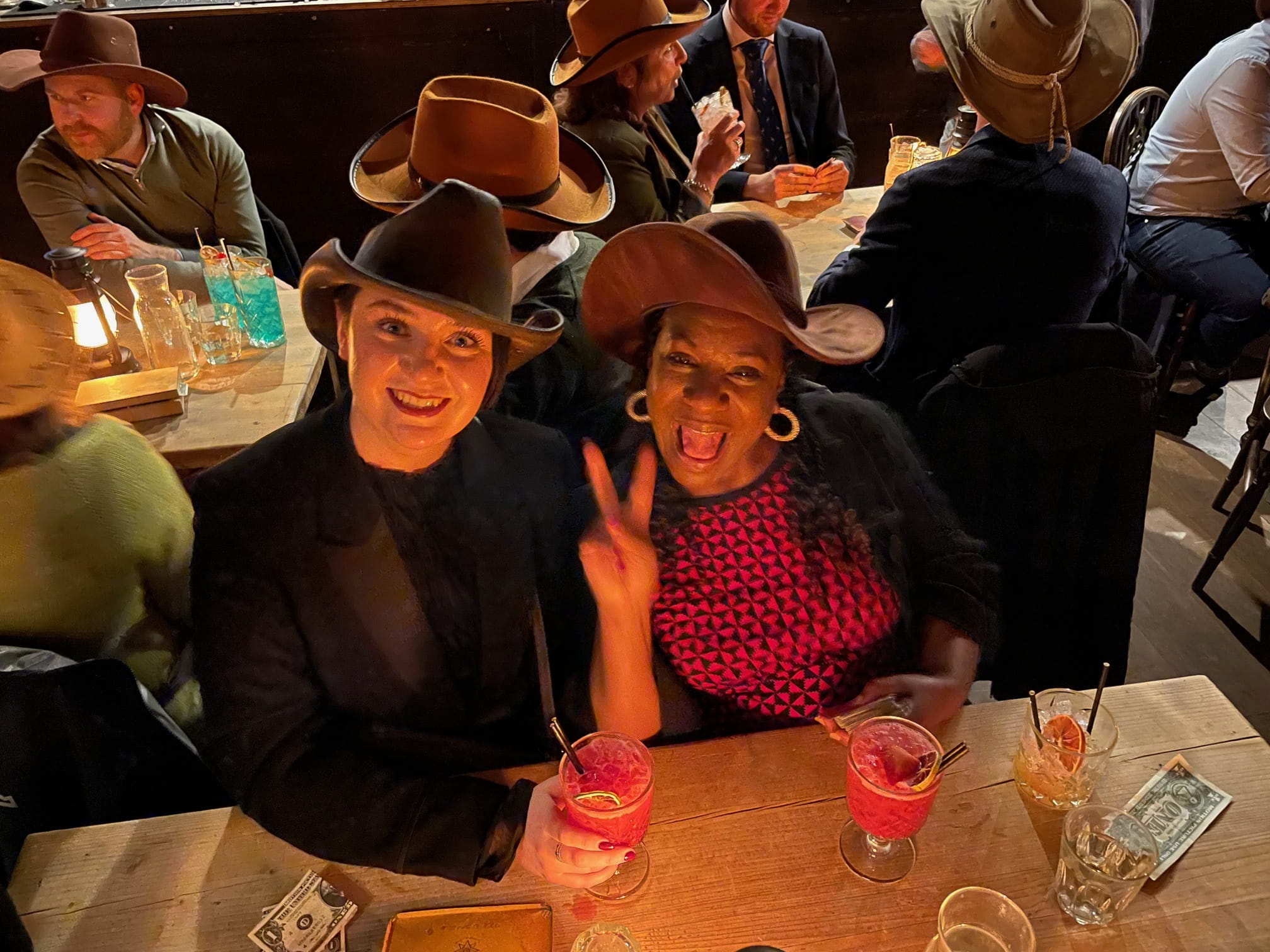 Meanwhile, across the Atlantic in London, our office is marking the special day with a trip to the Moonshine Saloon—an immersive experience that transports us back in time to the Wild West. Nestled in the centre of London, this hidden spot offers a taste of Americana like no other, with authentic decor, fun games, roleplay actors and a storyline that unfolds before your eyes.